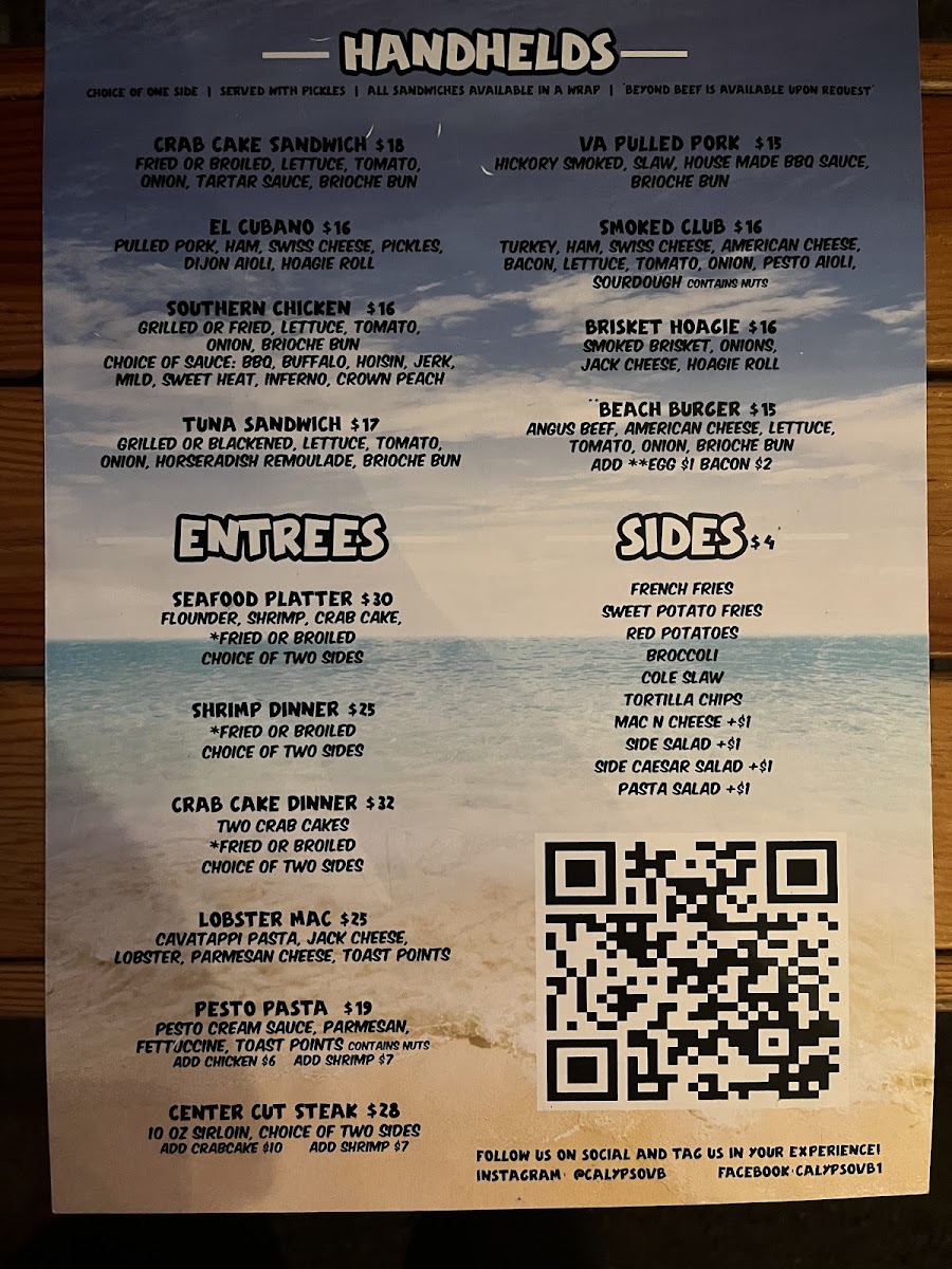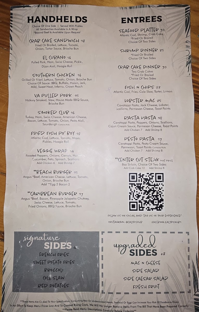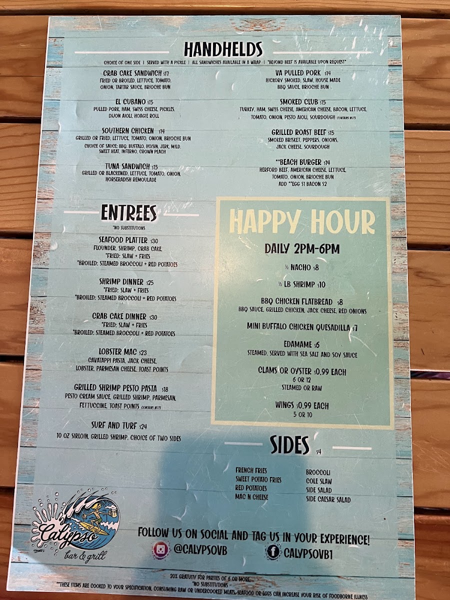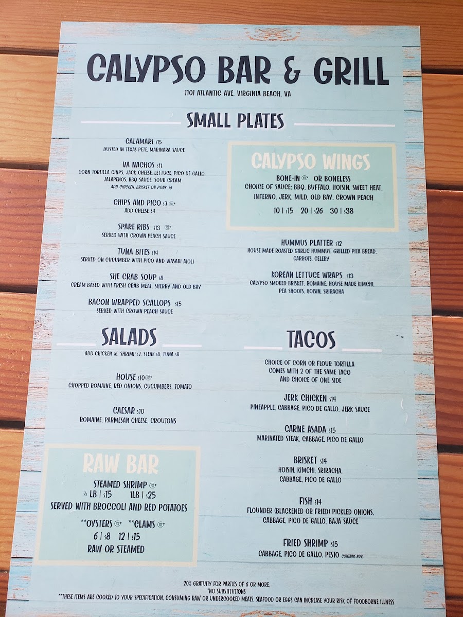 Introducing the menu of Calypso Bar & Grill, an inviting eatery located at 1101 Atlantic Ave in Virginia Beach. This vibrant spot is perfect for families and friends seeking a delightful dining experience by the beach. The menu offers a tantalizing selection of dishes that cater to all tastes.